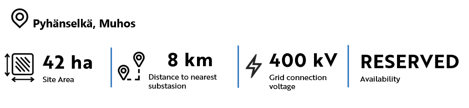Existing grid connection capacity available c. 1000 MW with the closest 400 kV Fingrid substation (Pyhänselkä) located about 8 km away from the site.