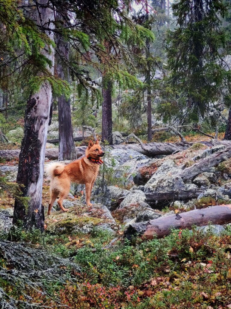14.45 Metsästyskoira näyttää taas tulevan tänne päin. Onneksi oon valmis kotimatkalle, saavat metästellä rauhassa loppupäivän.