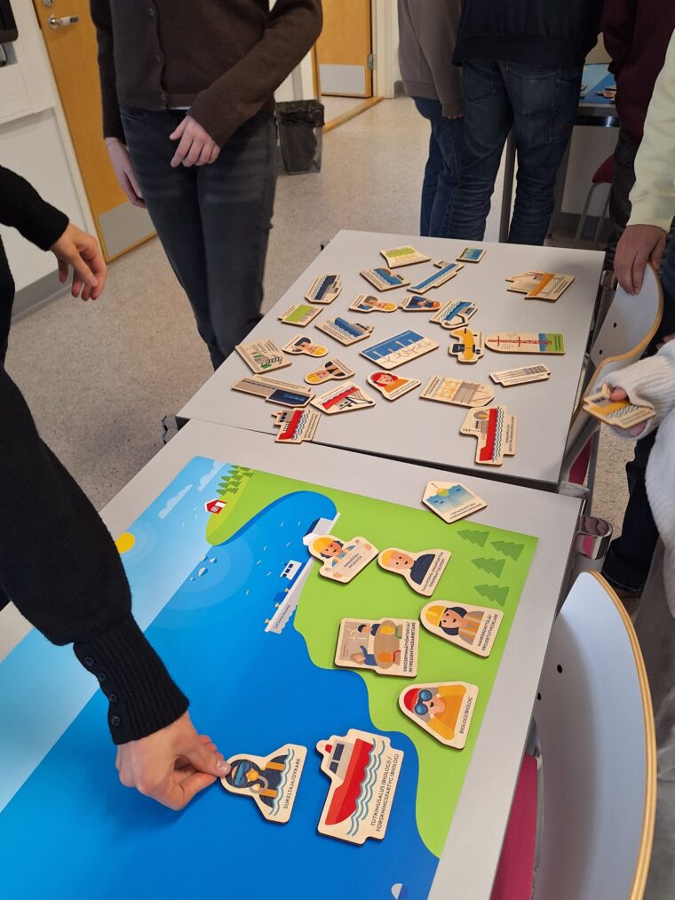 Lektionens inledning gav en översikt över projektutvecklingens olika faser. Efter introduktionen fick studerandena prova spelet, där uppgifterna bygger på projektutvecklingens faser – från tillståndsprocesser och miljökonsekvensbedömningar till byggnadsfas och elproduktion. Därefter fortsatte arbetet med escape room-uppgiften Nya vindar, där studerandena löste utmaningar gällande havsbaserad vindkraft under tidspress.