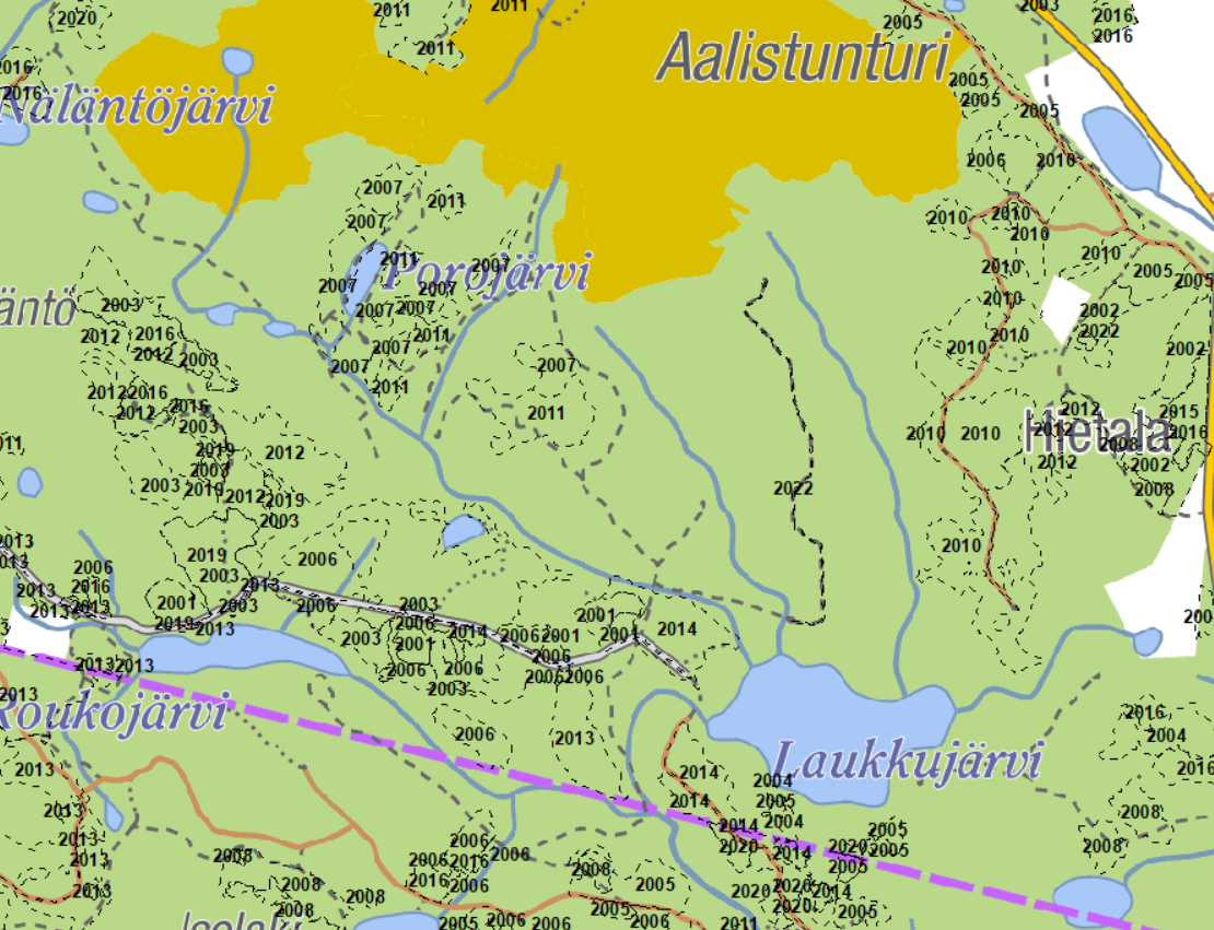 | 1.3.2023 | Metsähallituksen tiedote hakkuiden päättymisestä: Metsänhoidolliset harvennushakkuut Aalistunturin eteläpuolella on saatu päätökseen |